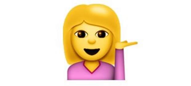 Es el caso del icono que representa a una mujer con la mano izquierda levantada y la palma apuntando hacia arriba. Su nombre oficial es 'Information Desk Person' (persona de mostrador de información). La tendencia general es considerarlo como un gesto de descaro o sarcasmo (según la Emojipedia), pero está abierto a otras interpretaciones.